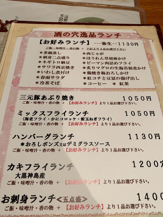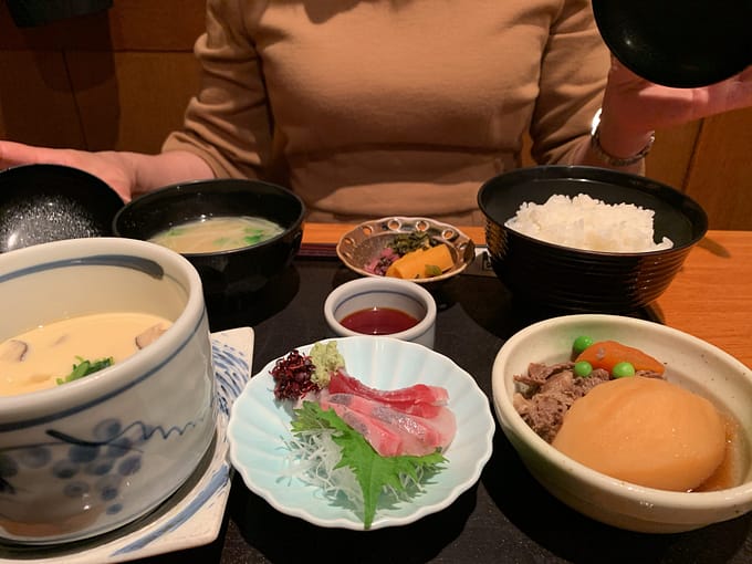 注文したのはお好みランチ1,130円。好きなおかずを三点選べるランチです。茶碗蒸しは普通の二倍はある量で、すぐに品切れになります。