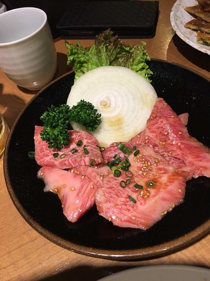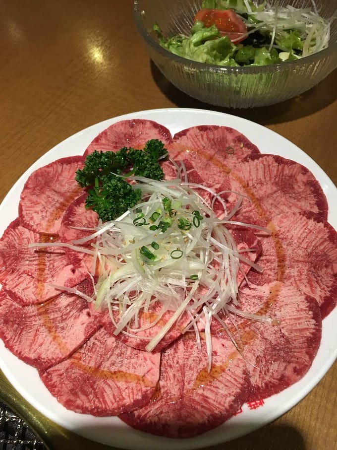 会話もはずみ、三人笑顔で食べた焼肉は美味しかったです。それにしても、このタン、いい色してるよね。食べたけど、食べるのもったいない