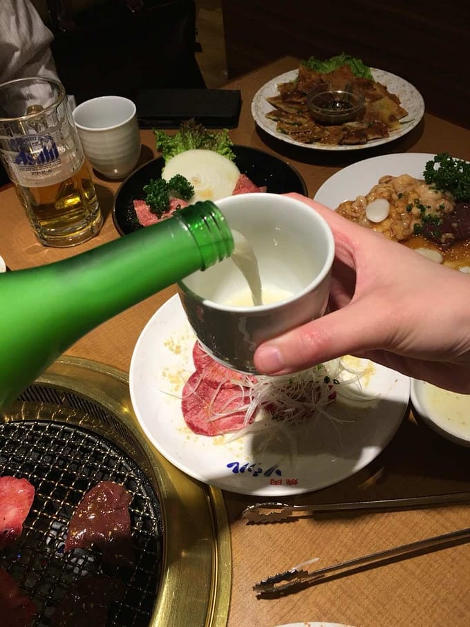 笑顔で乾杯、楽しい会話に焼肉食べて大満足の昨夜