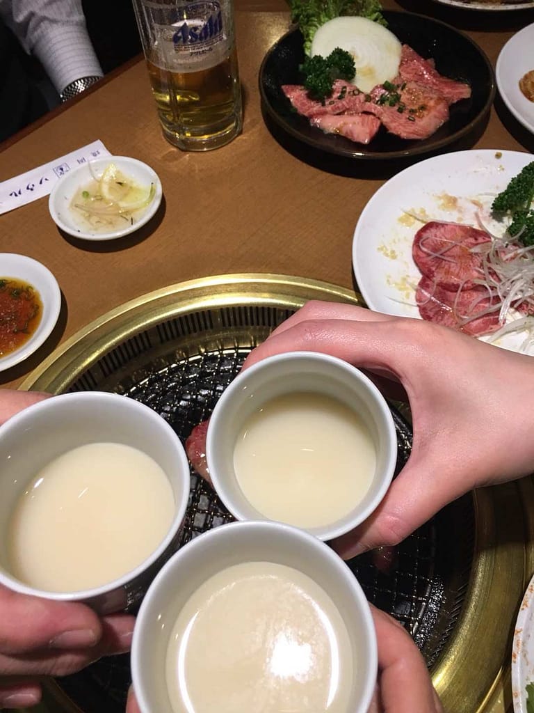 昨夜はY野さんとご一緒、りえいちゃんと三人でお食事しました。まずはマッコリで乾杯です(*^▽^*)