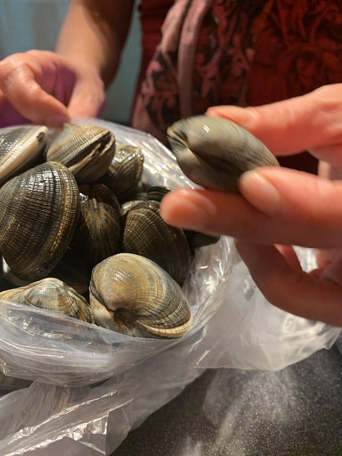 そして昨夜は、別の常連さんが、大きなアサリを持って来てくれたんです。
