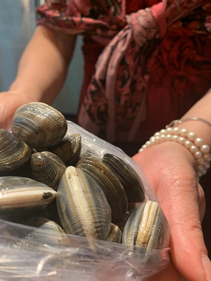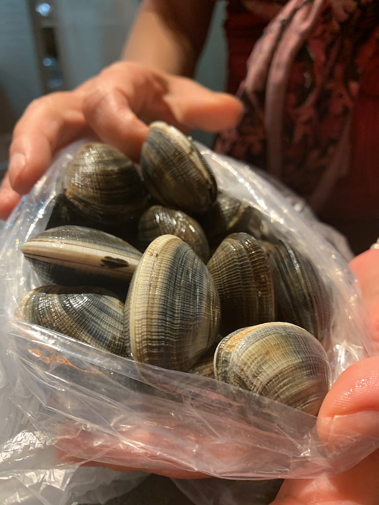 常連さんのTさんは、バケツいっぱいにホンビノス貝を、ヨイショヨイショって、重い思いをしながら持って来てくれました。