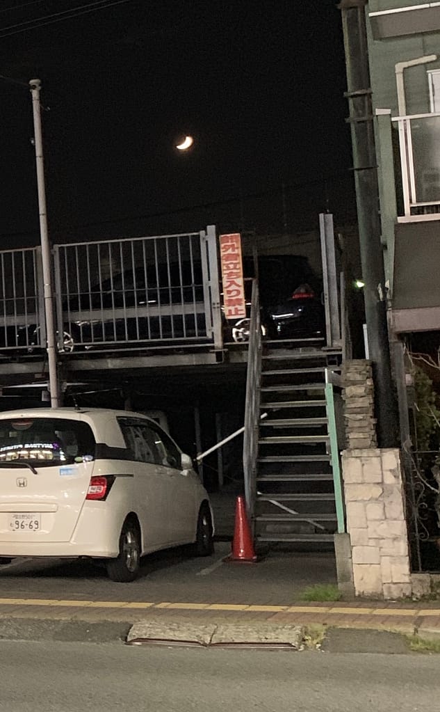 もっと近くで見よと思って、駐車場の二階に上がろうとしたら…