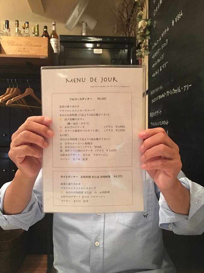 コックさんの白衣、白くて長い帽子もステキ、お店の雰囲気は上品でオシャレです。