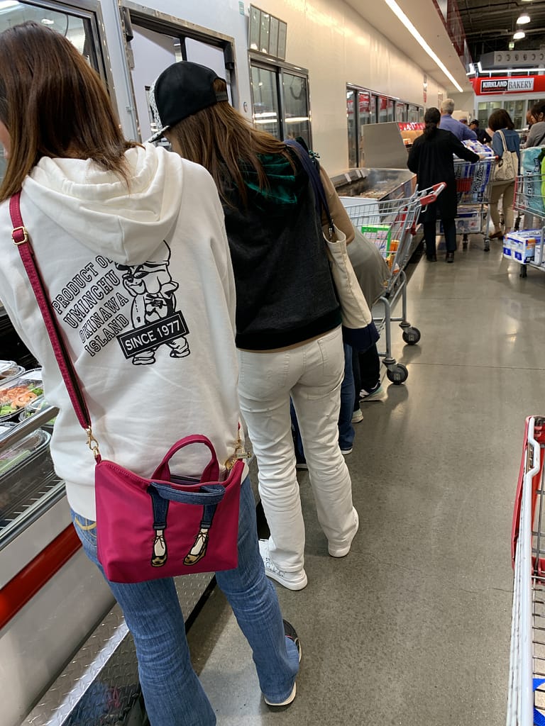 大きな倉庫に商品がいっぱい。コストコに来るとあれも欲しい、これも欲しいって興奮します。