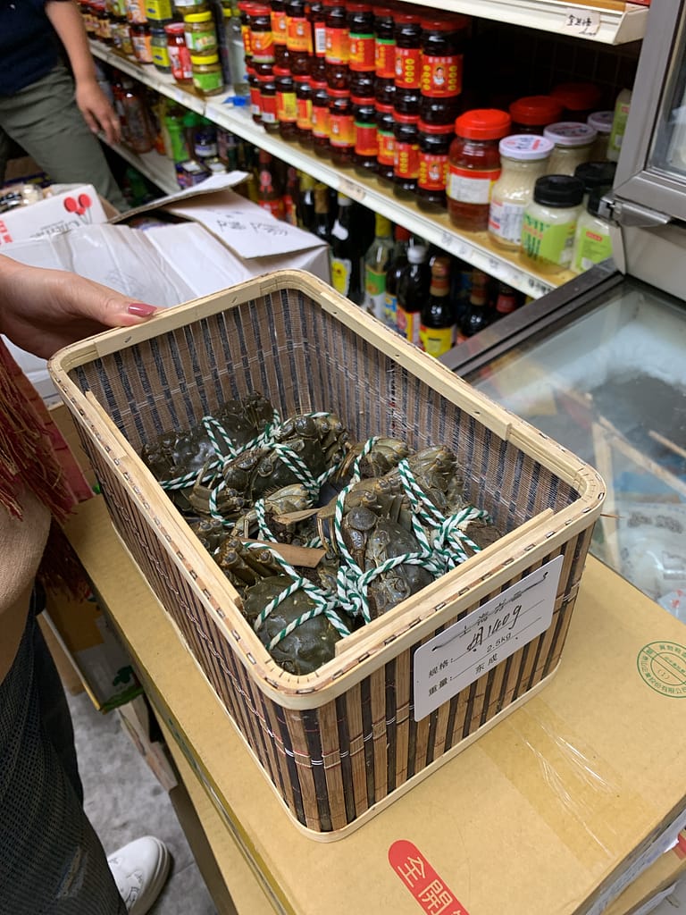 こうして、上海蟹に水をかけて、フキンで包むと元気になるみたいです。