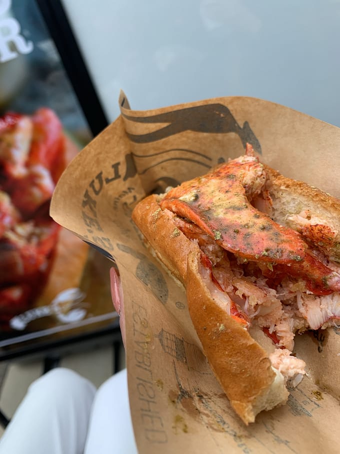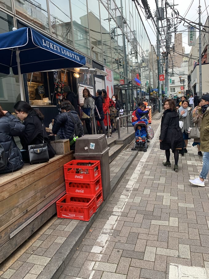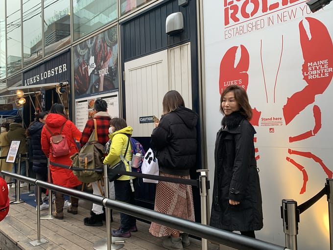 いつもはもっと行列ですが、このくらいの行列ならと思い並んでみました。美味しんですよねー!、ロブスターロールにスープ