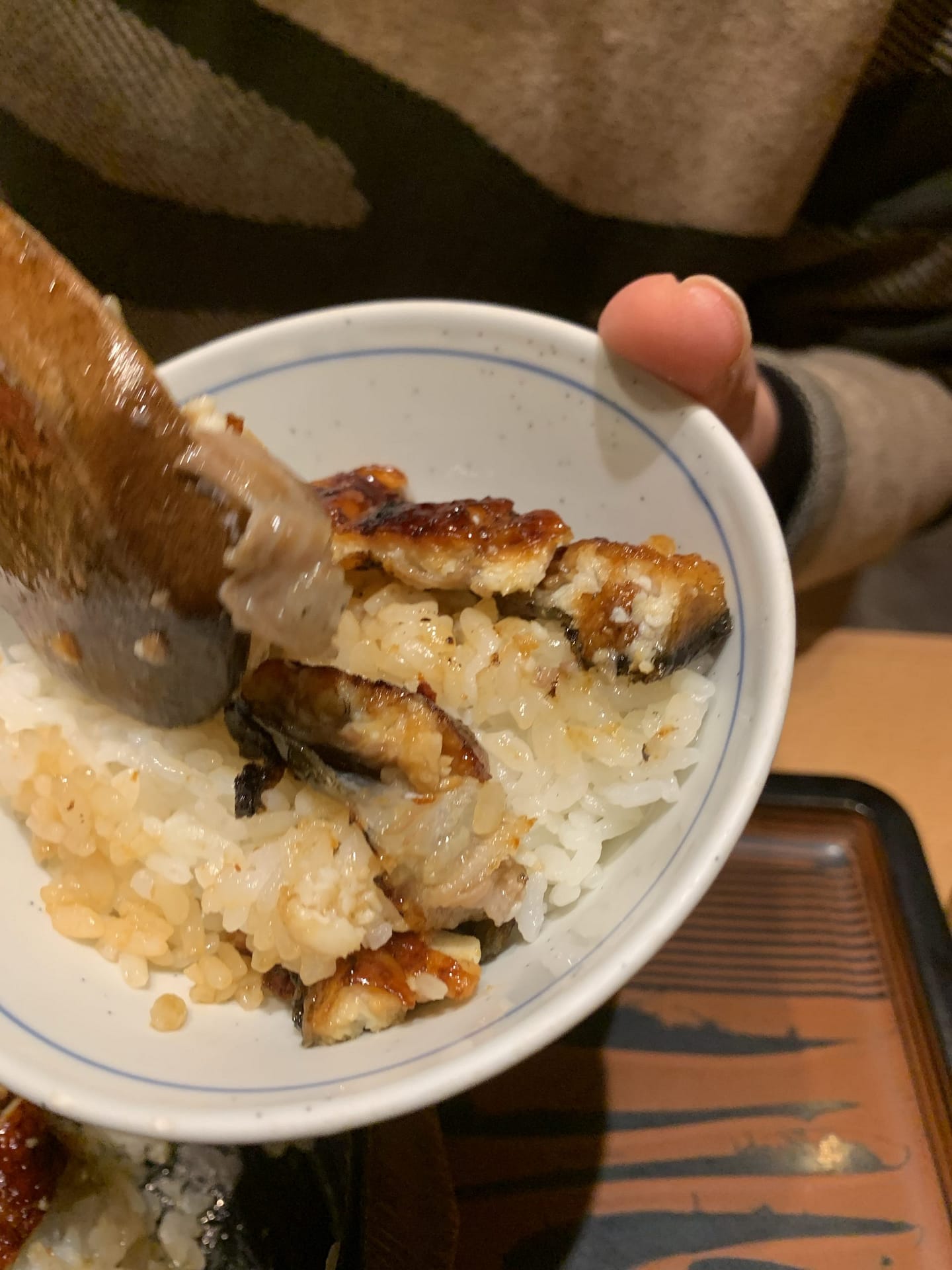 お櫃(おひつ)の中は、きざんだうなぎの蒲焼