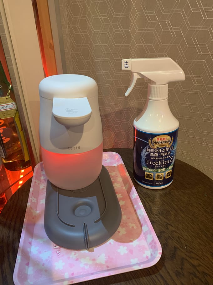 もうひとつは、手をかざすと、アルコールの消毒液が「シュッ」