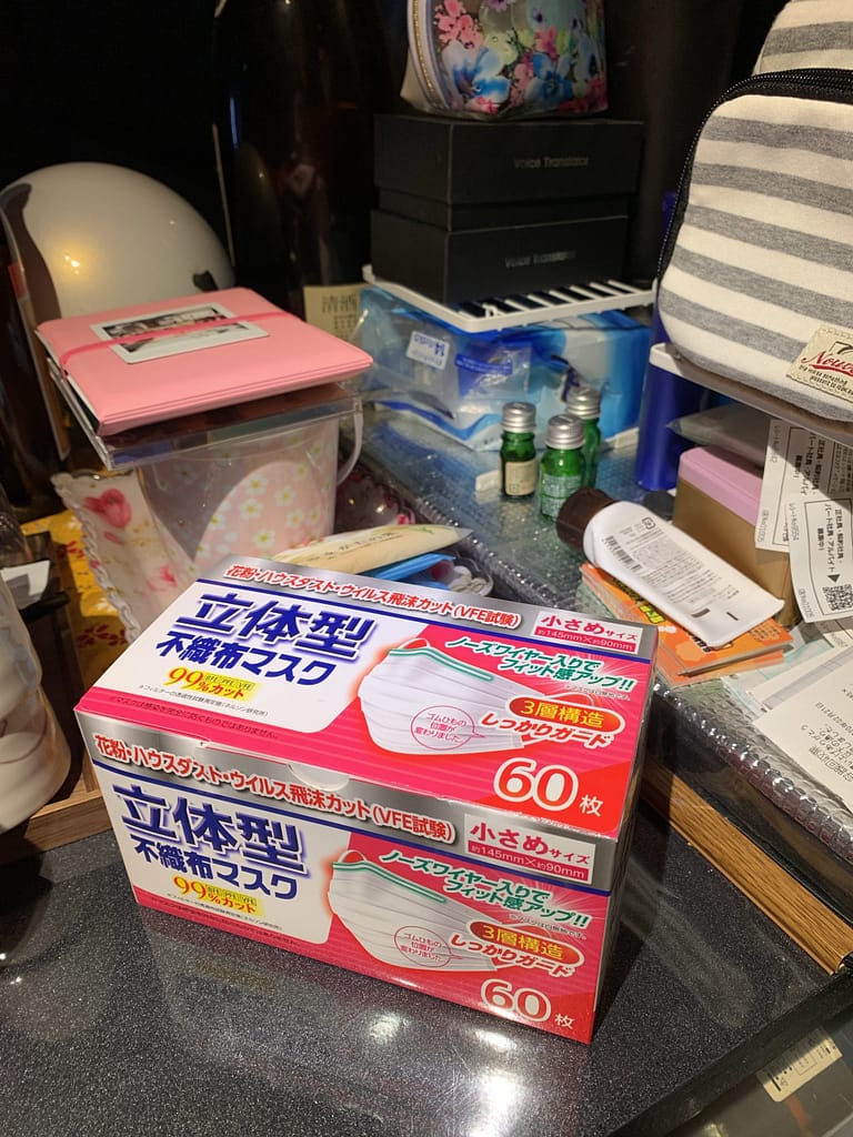 メガネが当たる、マスクの部分を折り返えしてかけてみて!