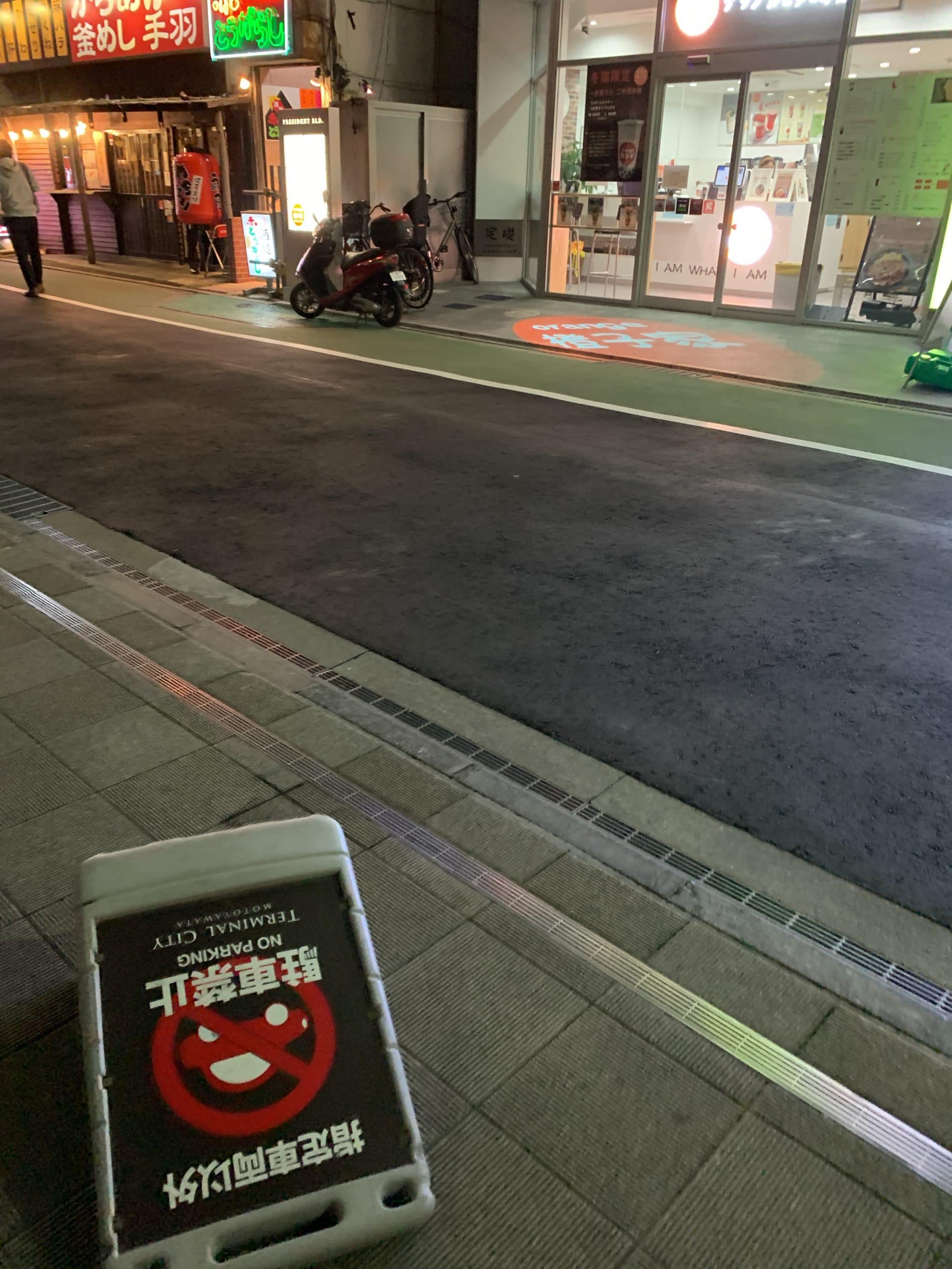 この看板、私が足で蹴っ飛ばしたみたいな感じ?