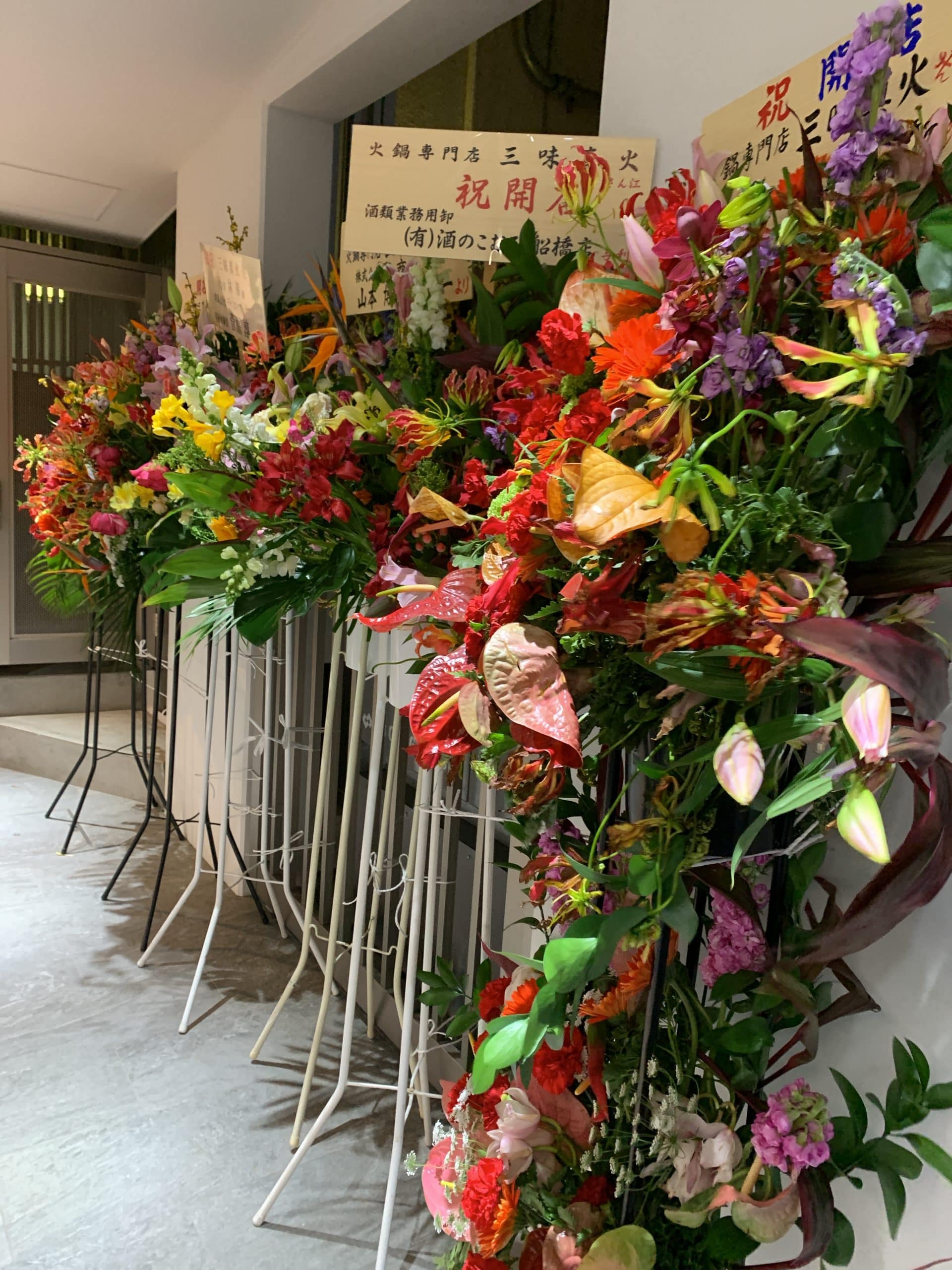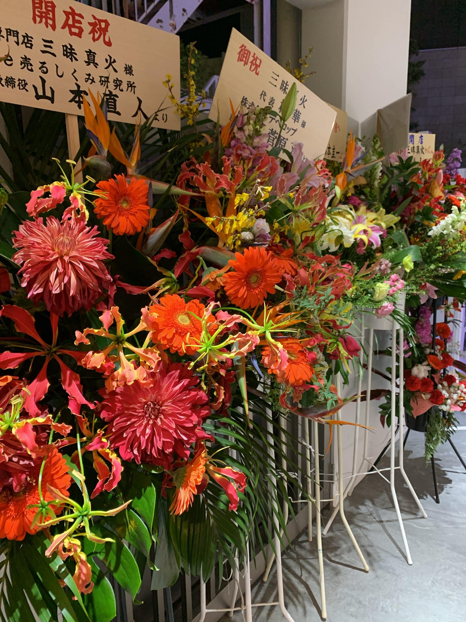 開店祝いのお花が入口いっぱい並んで飾ってありました。