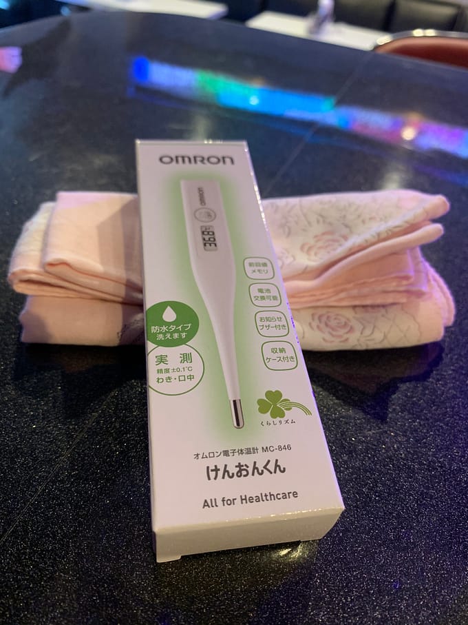 赤外線の体温計もありますが、念のため「けんおんくん」も置いています。