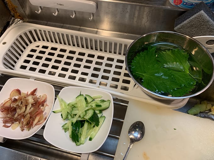 ただ、普通に茹でただけの、そうめん。薬味でさらに美味しくいただけますねー
