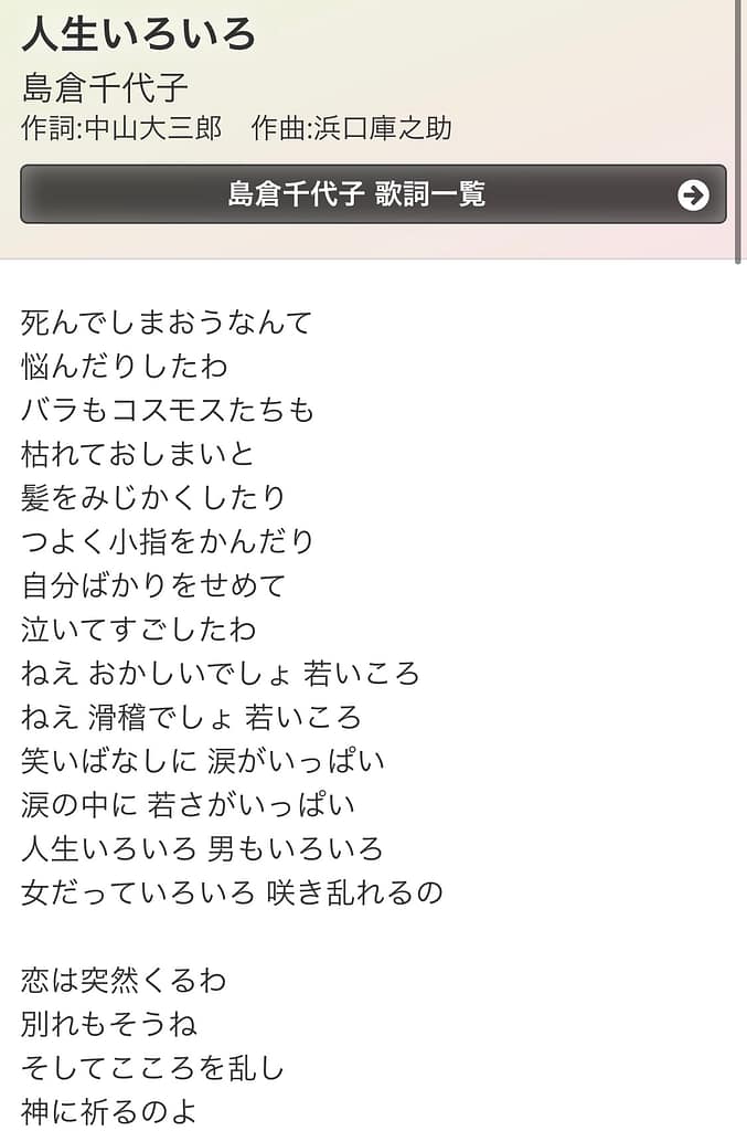 「人生いろいろ」は島倉千代子さんの歌