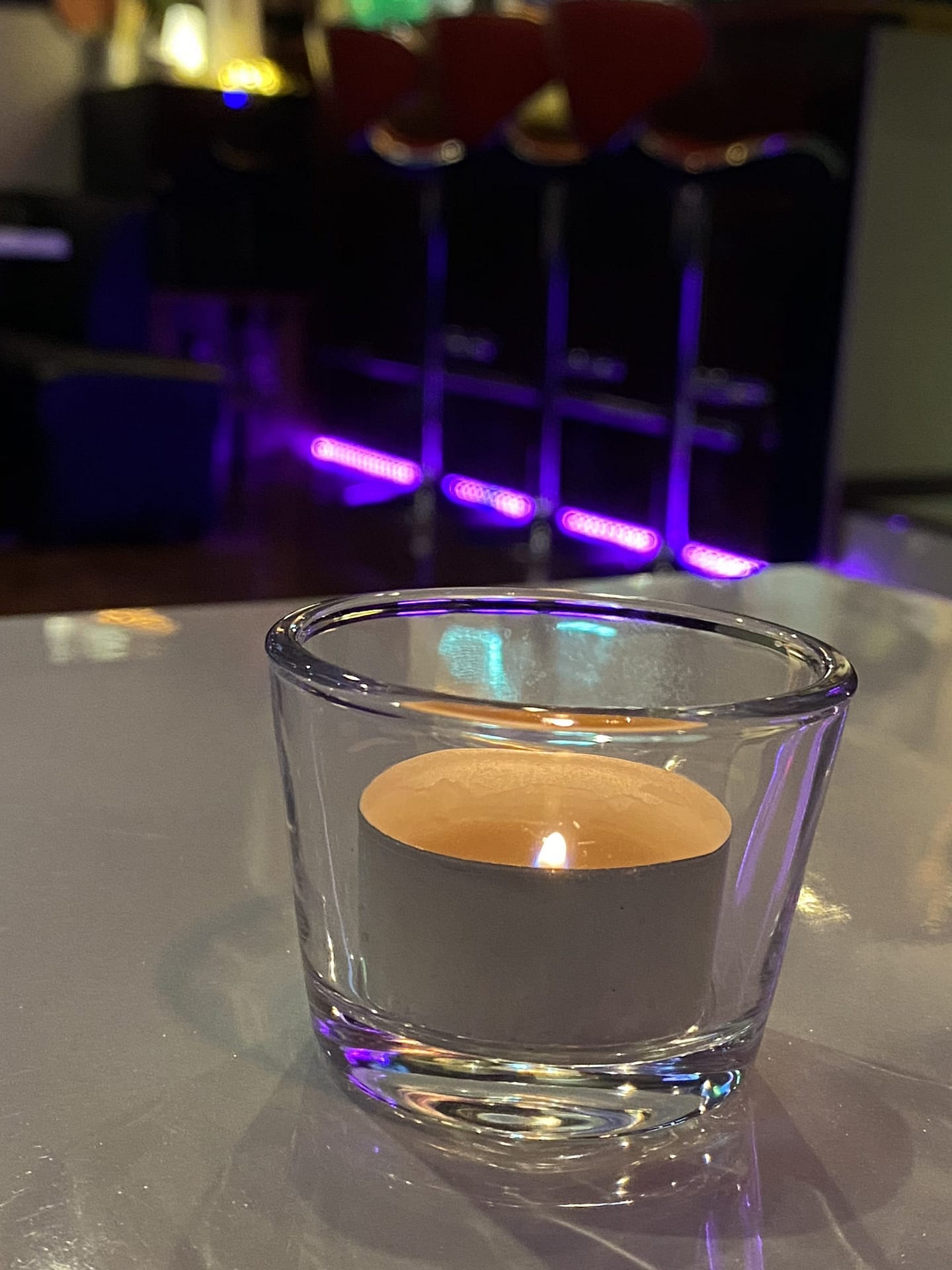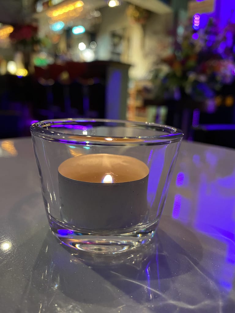 週末はそれぞれのテーブルにキャンドルを置いています。キャンドルの炎で雰囲気も変わります。