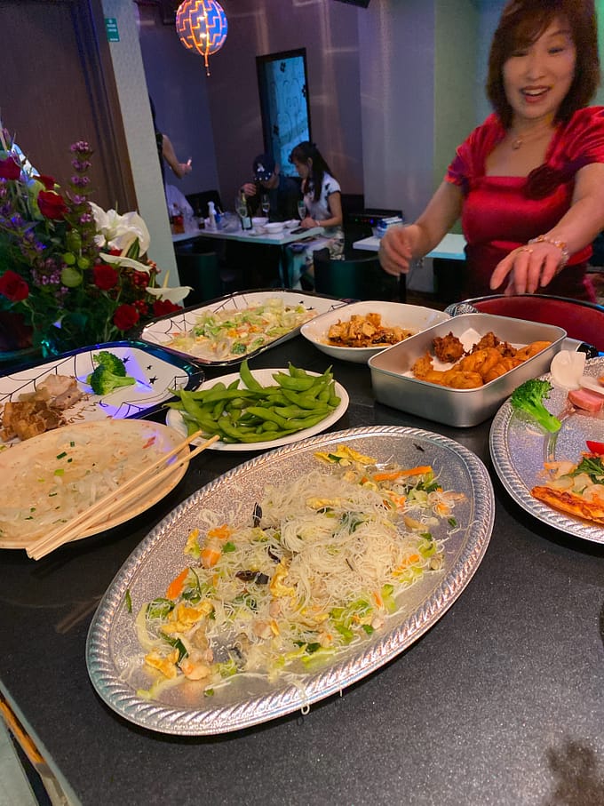 みわちゃんも、わざわざお店に料理を届けてくれました。唐揚げ、ビーフン、スタッフ女の子も心を込めて作ってくれましたー