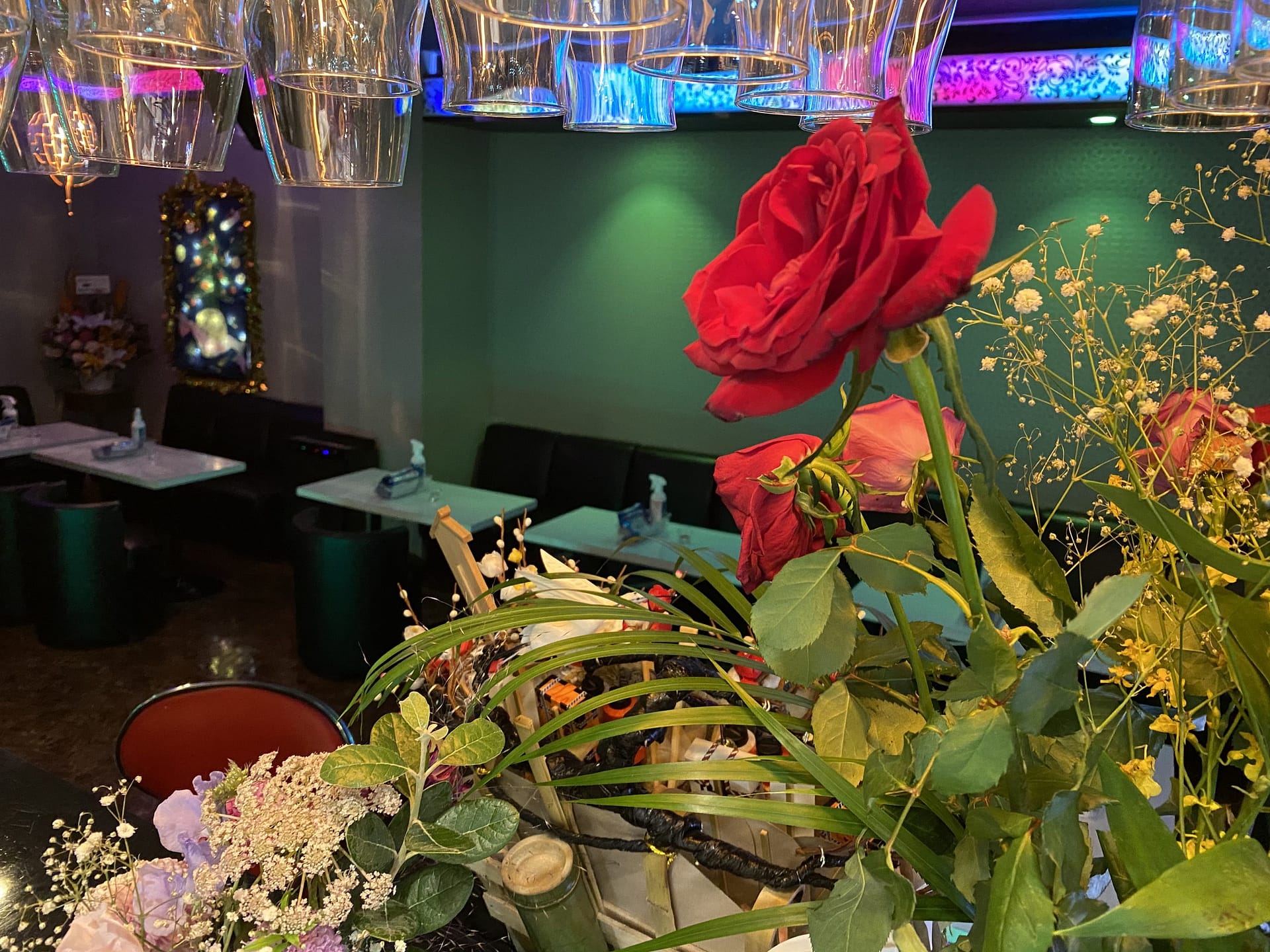 お客様の雰囲気によってですが、天井の照明を落とします。
