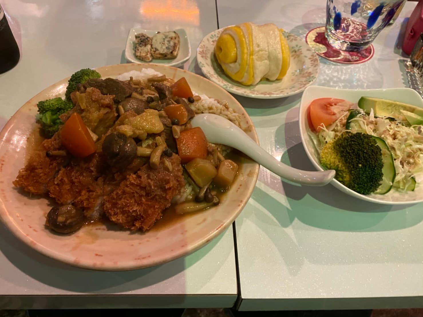 昨日作っておいた、具がいっぱいのカレーライス。カレーのルーもライスも見えないけどカレーライスです。