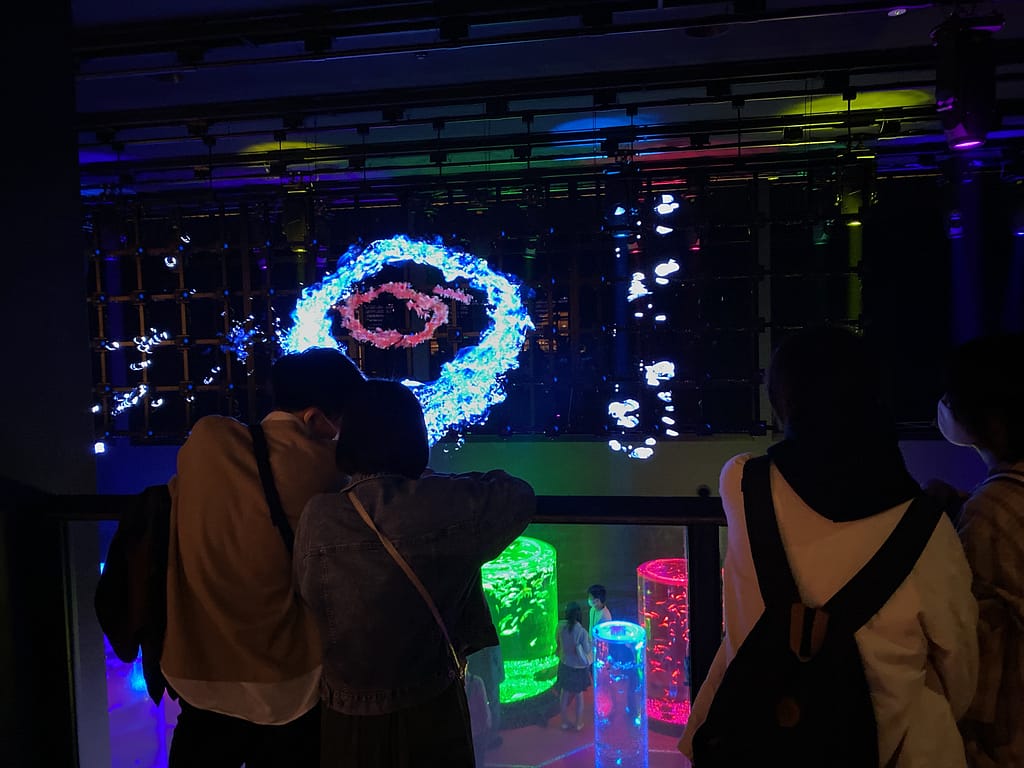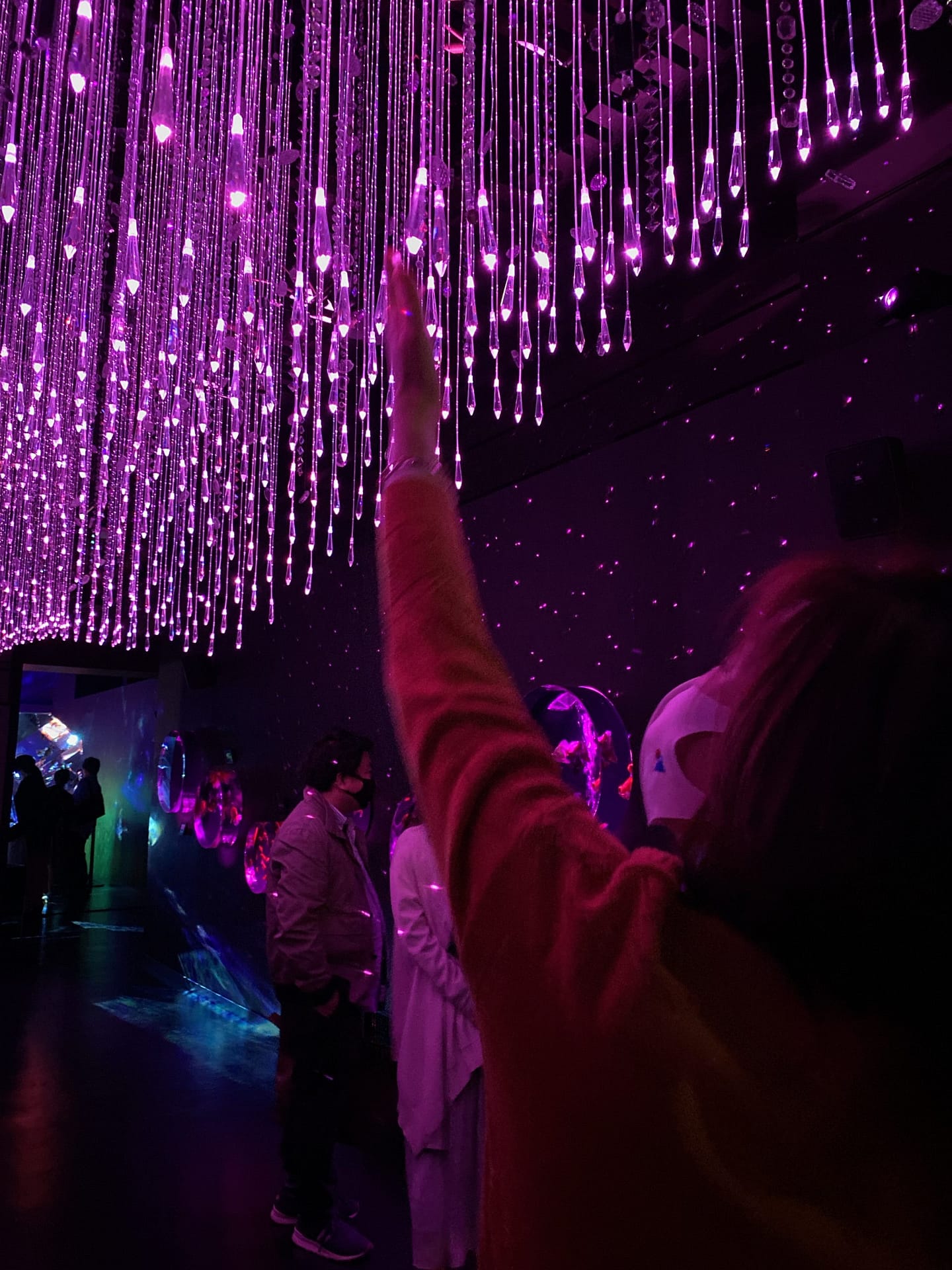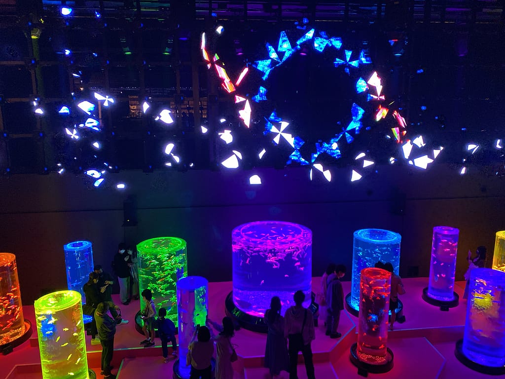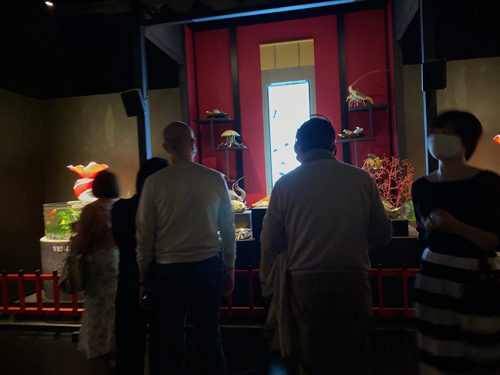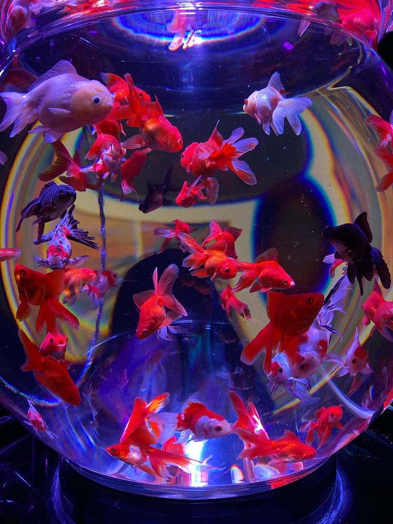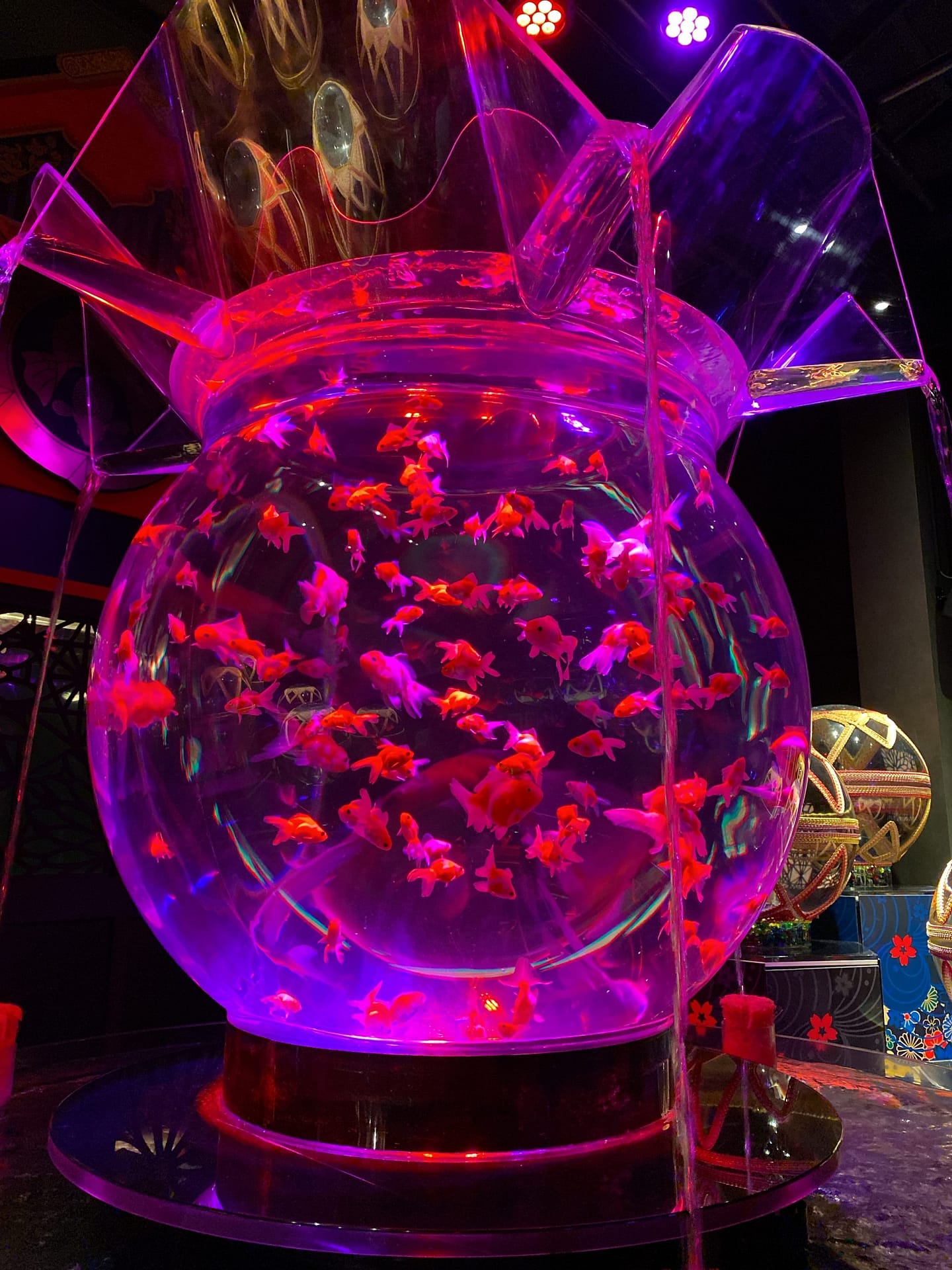 写真撮影は許可されているので、みなさんポーズをとりながら金魚と一緒に撮影しています。