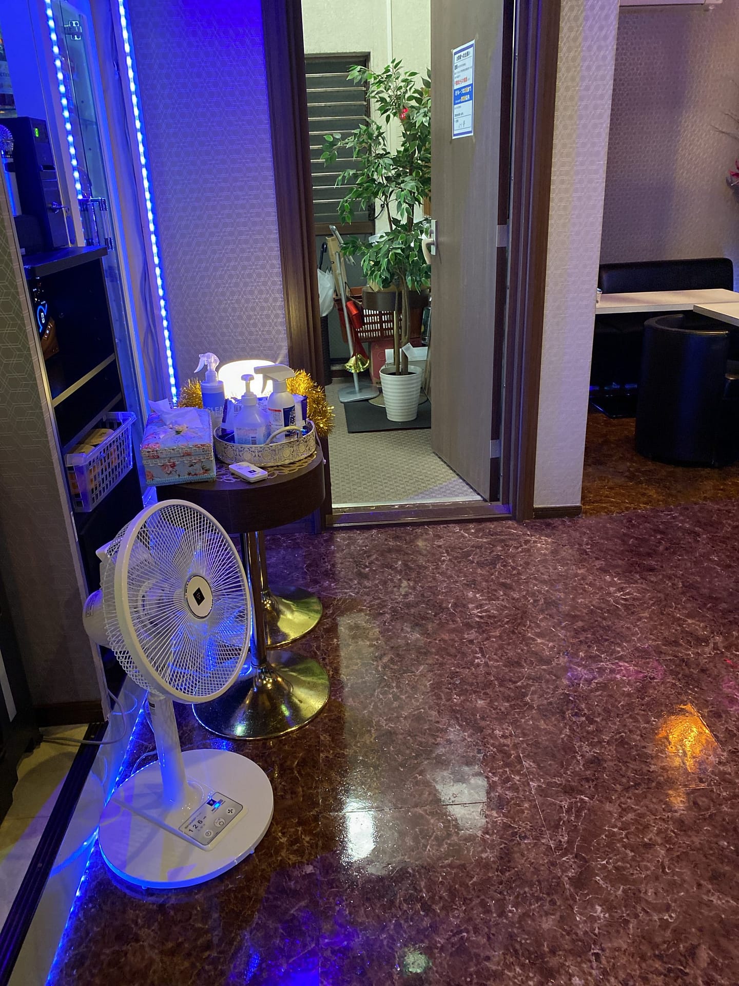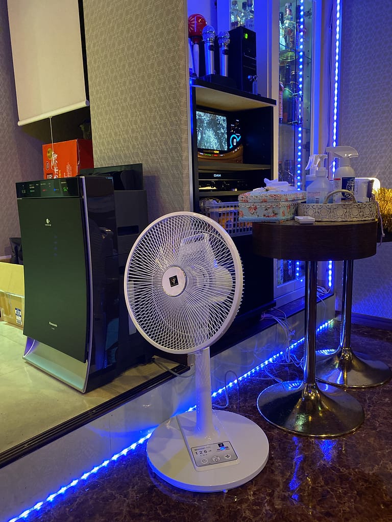 フロアーには小さい扇風機が2台、大きい扇風機が1台、空気清浄機2台、香りの加湿が2台、おトイレは扇風機1台、香りの加湿器1台、人が触れるところは除菌しながらやっています。