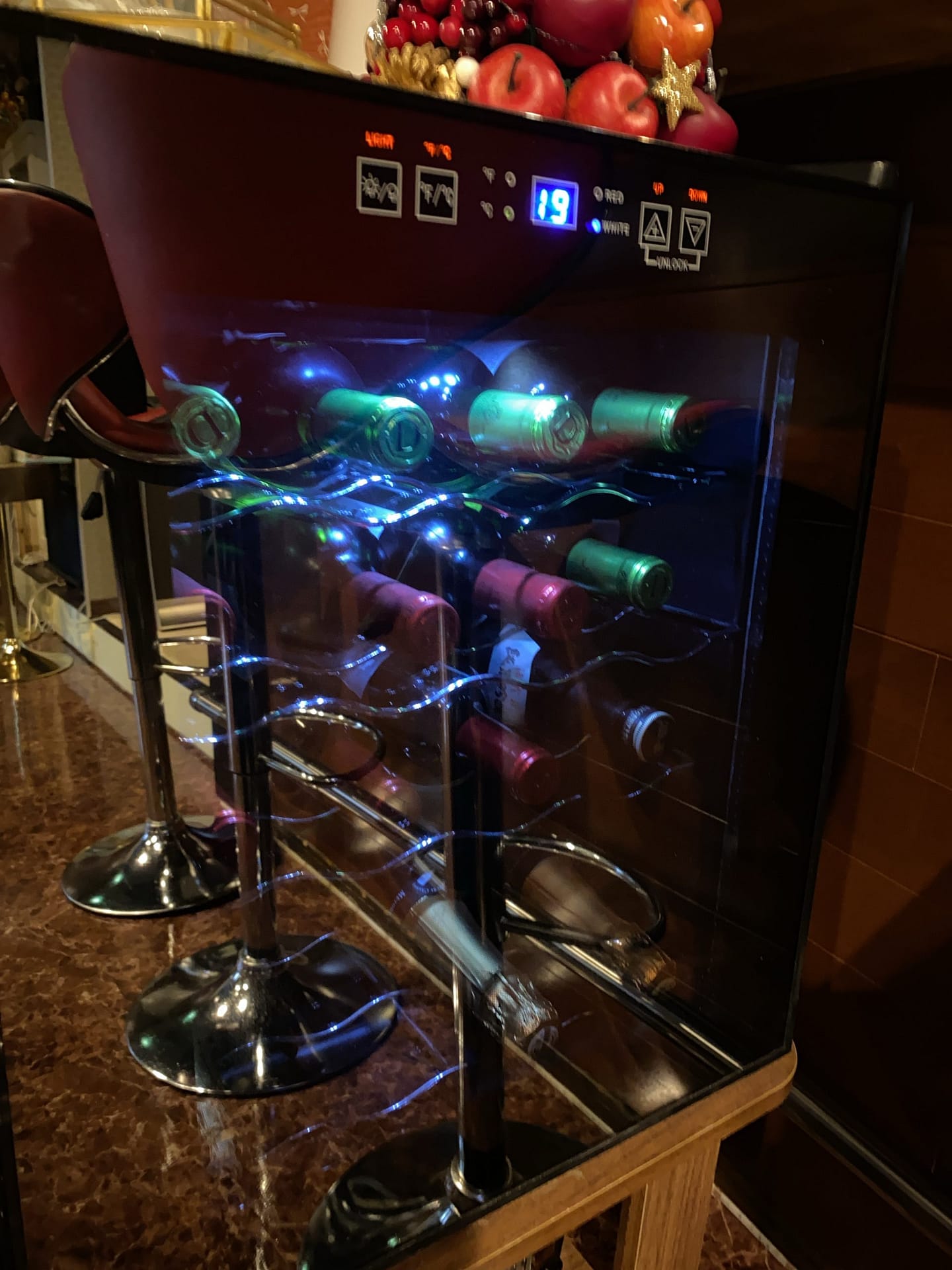 ワインセラーの温度が19度なのは、ワインを入れたばかりだから