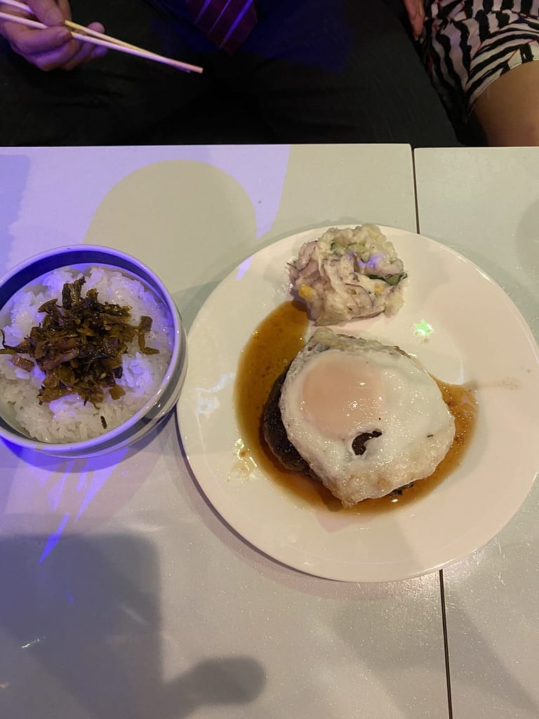 ご指名のハンバーグは、白いお皿に目玉焼きとポテトサラダ。夕飯まだだったからね、すごく美味しいって完食。喜んで食べていただけて良かったです。