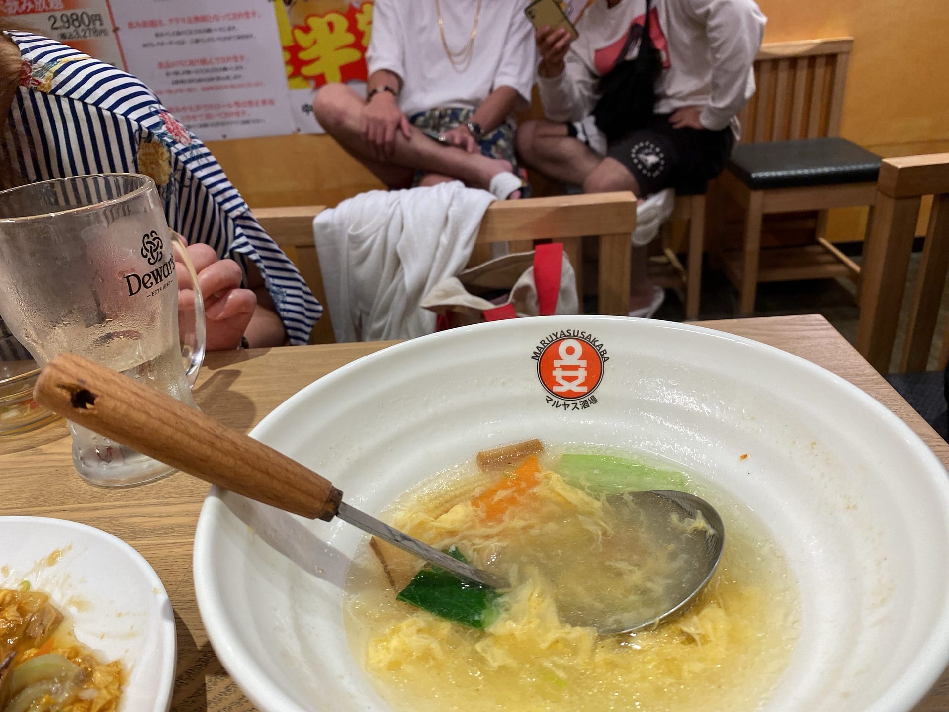 グループで来ているお客さんが多かったです。みなさん楽しくおしゃべり、待っているお客さんもいるくらい、にぎやかなマルヤス酒場でした。