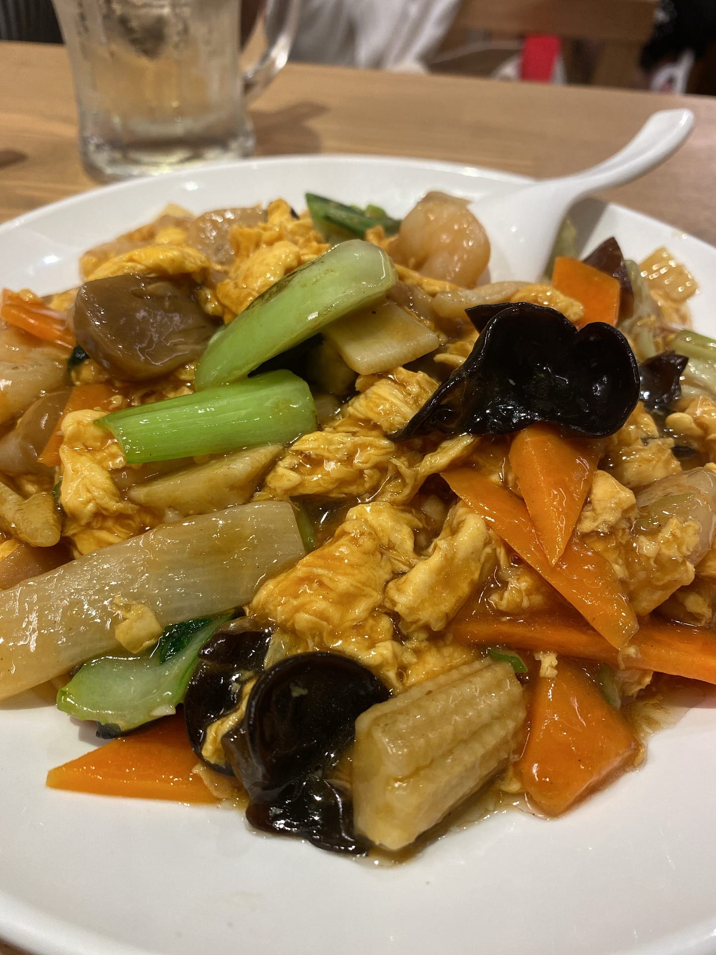 エビ木耳玉子(木耳と書いてキクラゲ ← 読めました?)300円