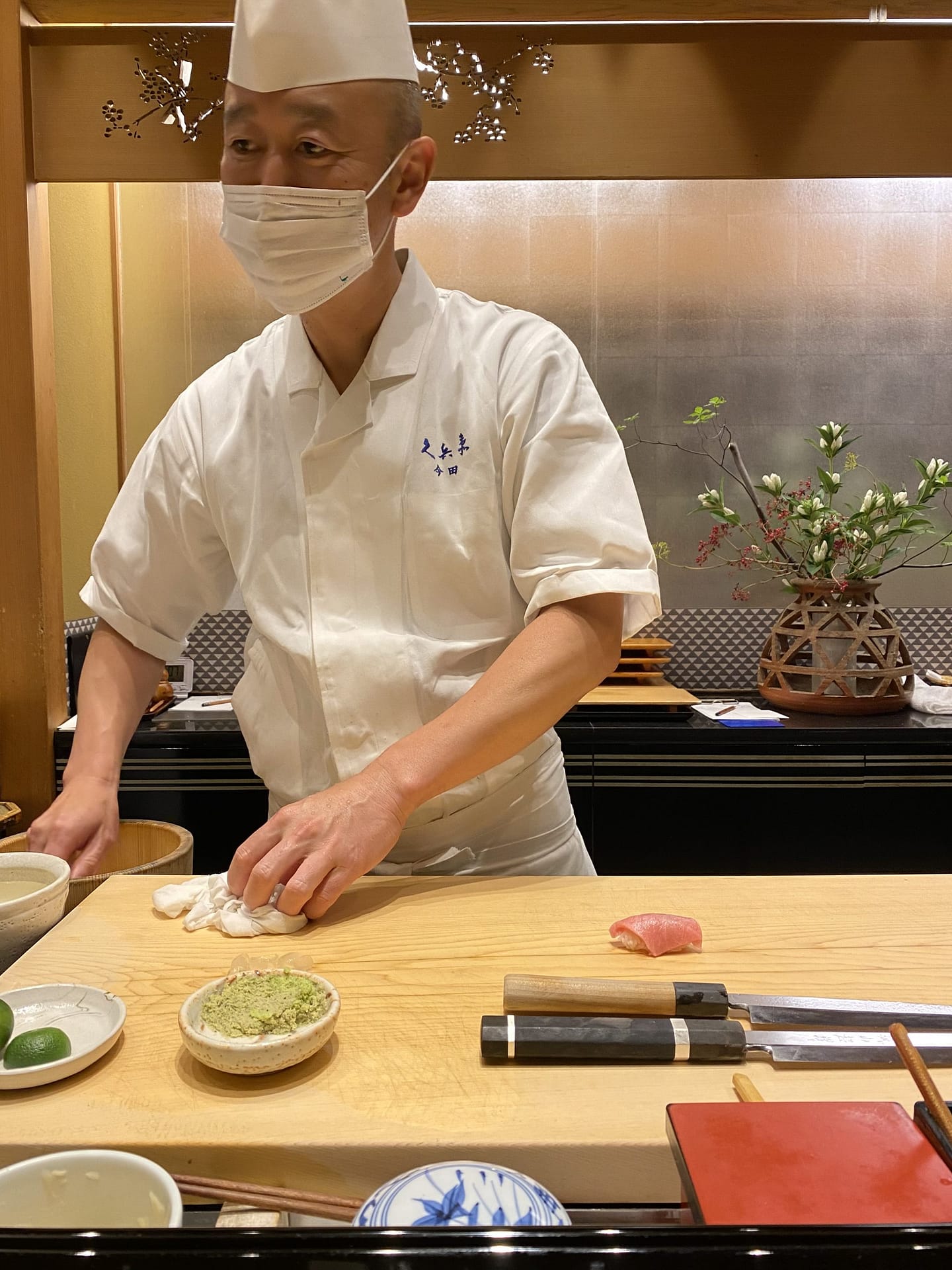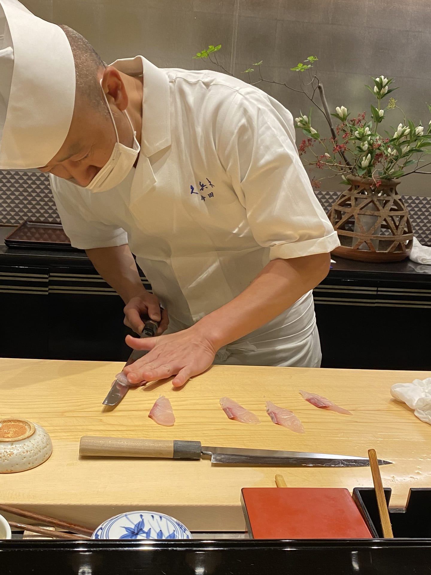 包丁の輝きと包丁さばき、寿司職人さんにうっとり