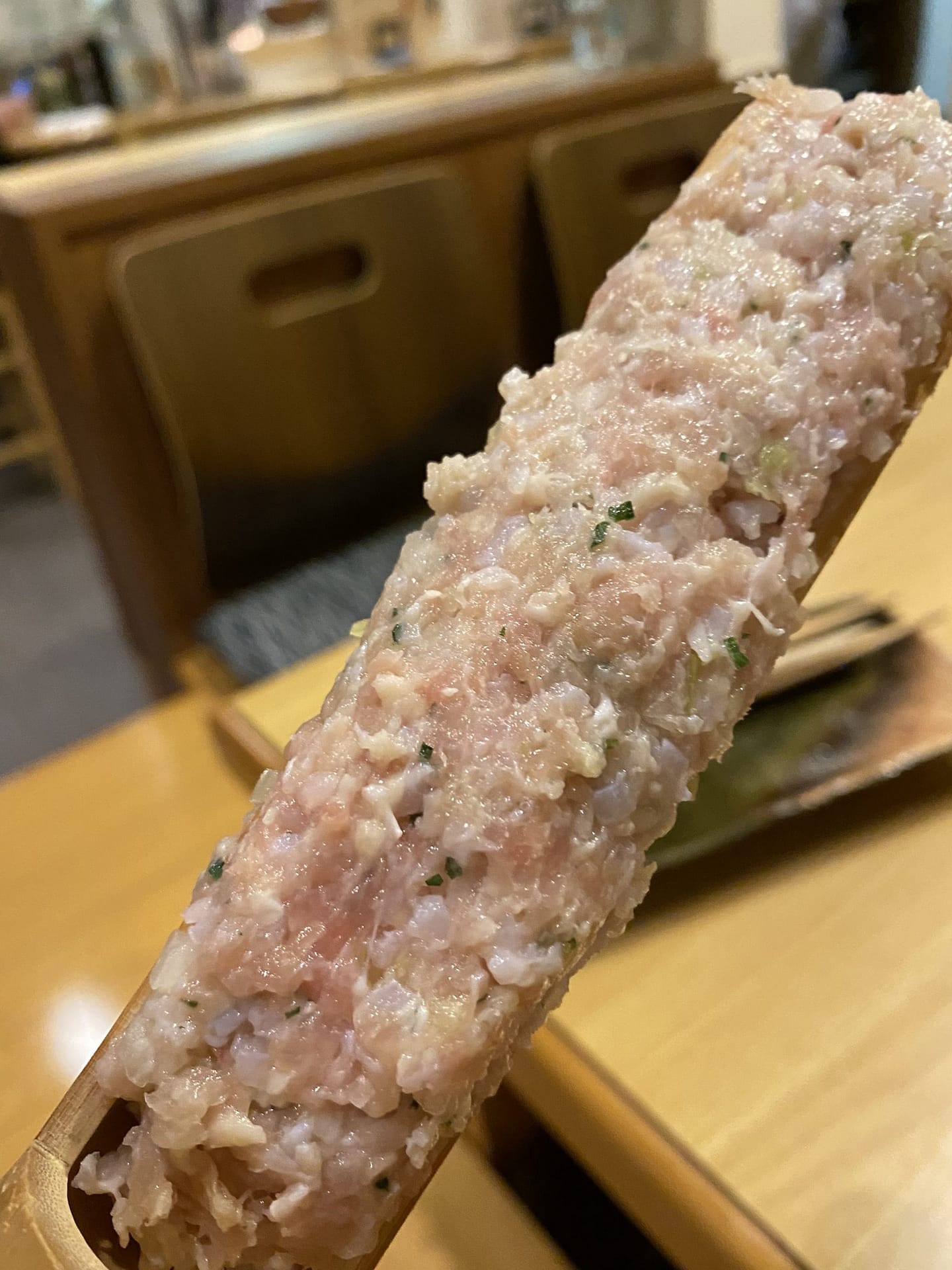 竹筒には比内地鶏のつくね