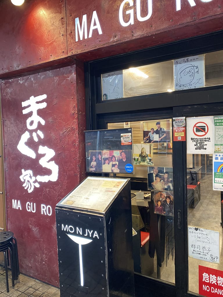 月島には、たくさんのもんじゃ屋さんがありますが、今回はまぐろ家 月島西仲店。決め手は単純、店頭に貼ってあった有名なスターの写真