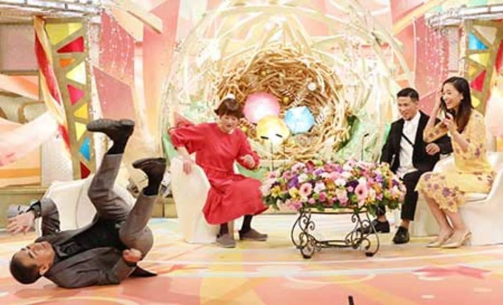 まるで「新婚さんいらっしゃ~い」の桂文枝さんが椅子から転げ落ちる感じで。。。