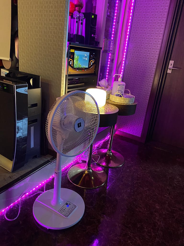 扇風機の前で顔を近づけて