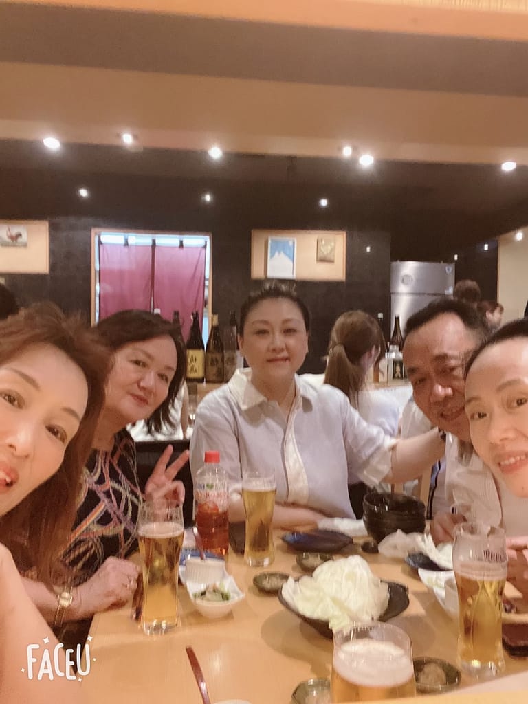 左から私、みわちゃん、中央がここちゃん、市川唐苑酒楼のマスターと李さん