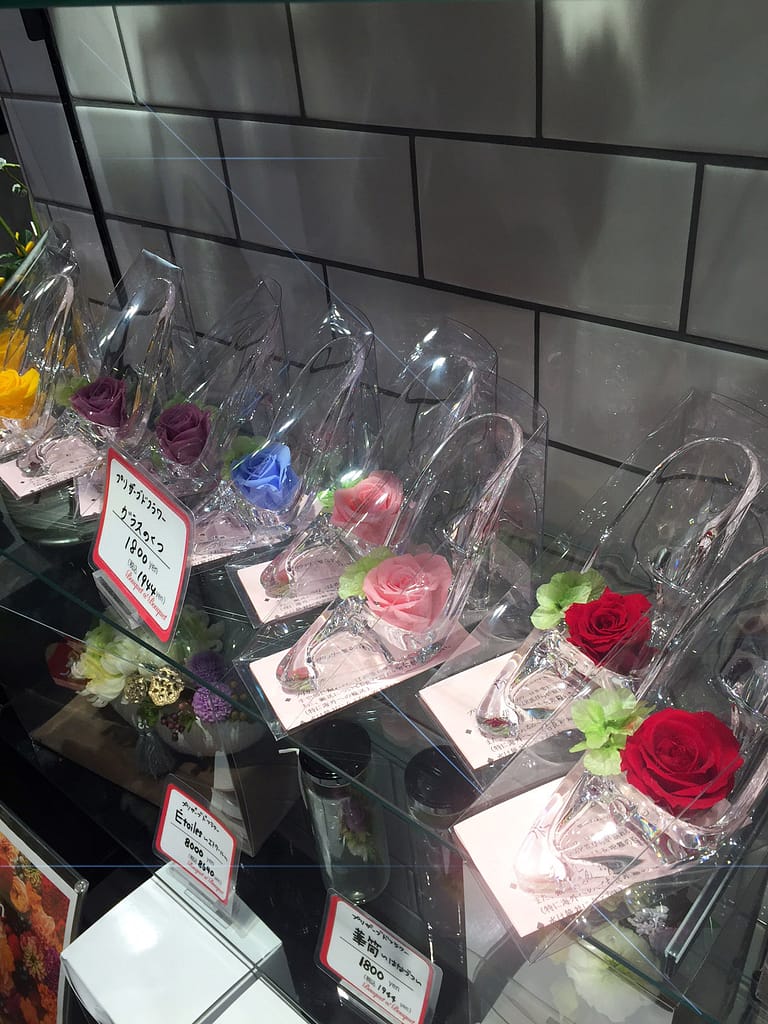 本八幡シャポーのお花屋さんで見つけた硝子のヒール。