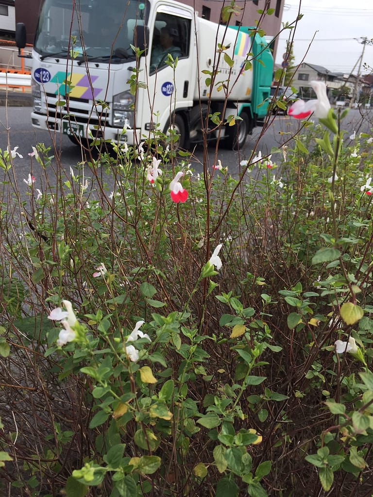 車が行き交う道端に