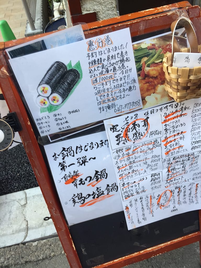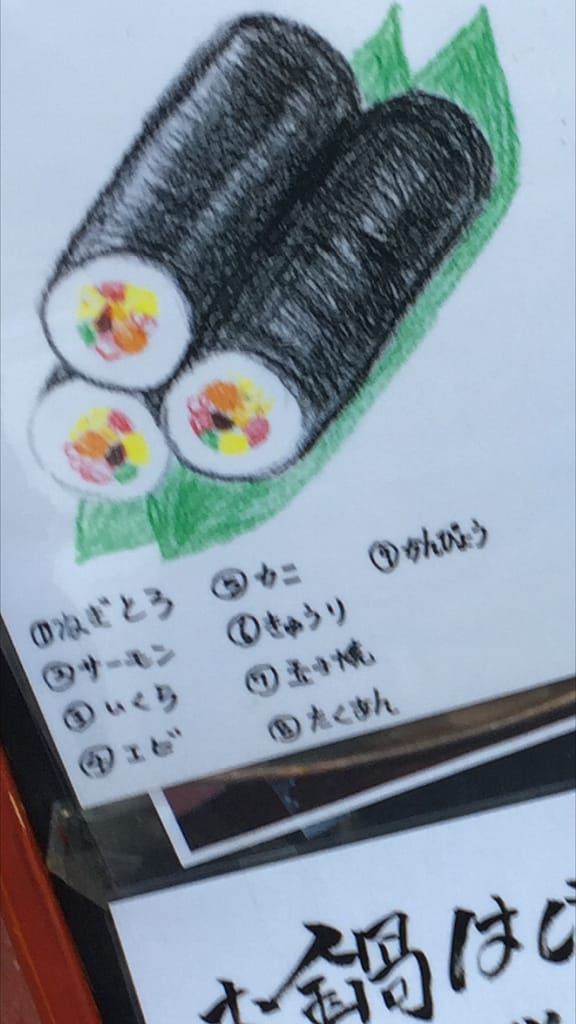 珍しいお酒の銘柄がそろっていて、お料理もとっても美味しい。そんな居酒屋七の子、絵のセンスもバッチリね。太くてむちむちした恵方巻がとっても美味しそ~