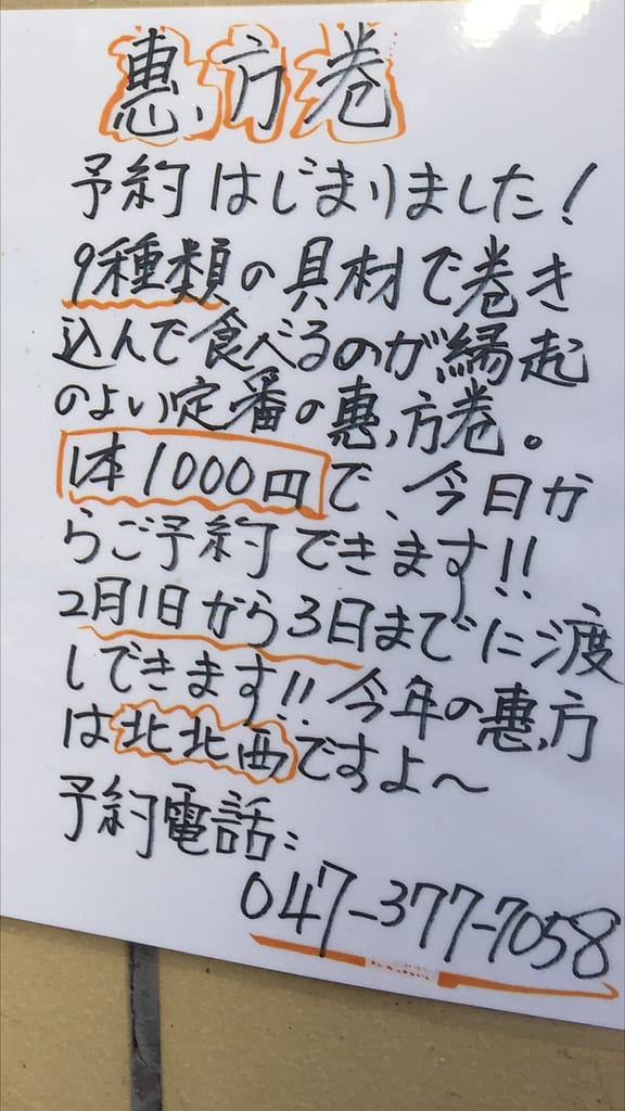 恵方巻の予約は居酒屋七の子