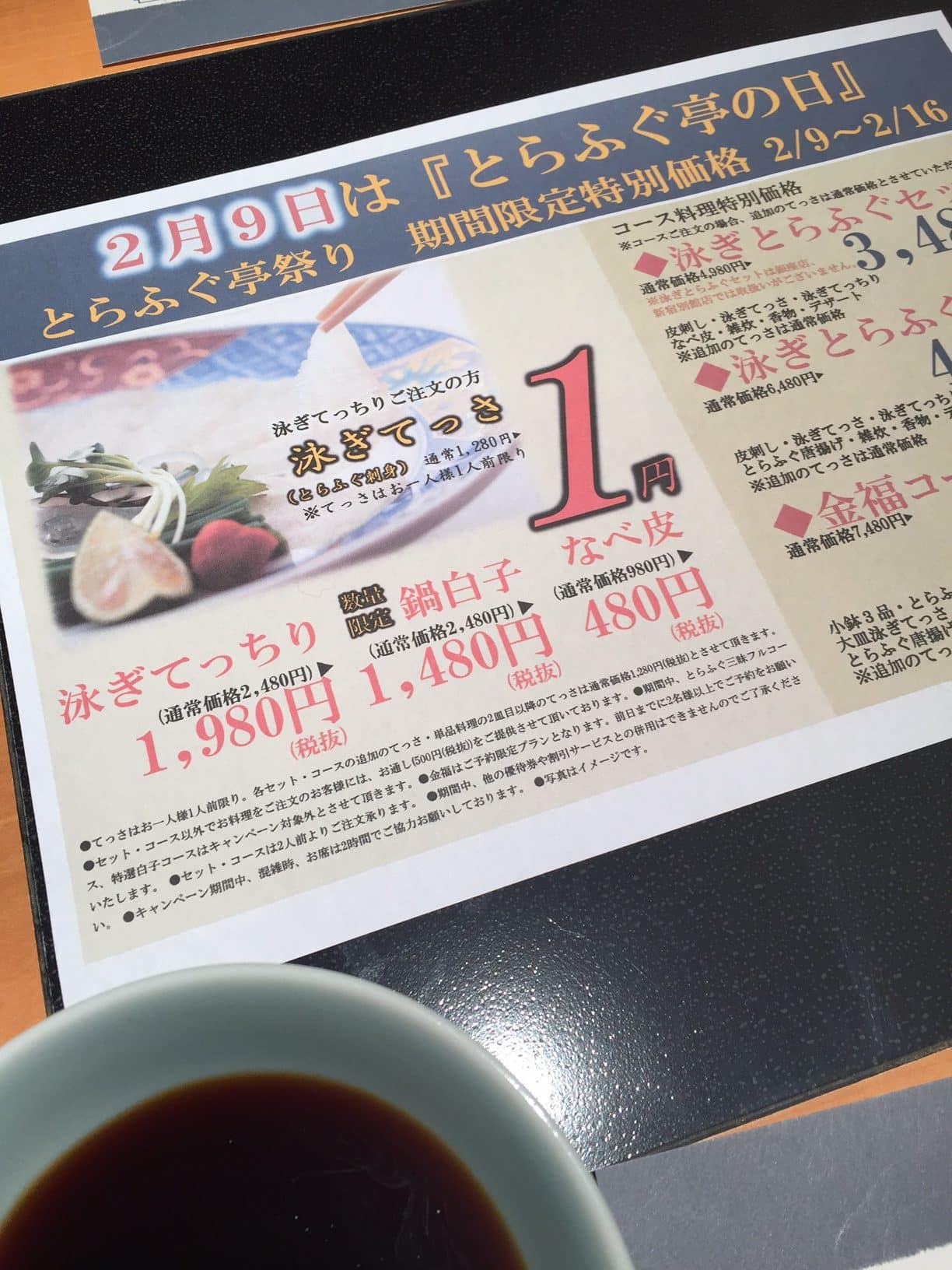 ふぐの日はお得感がいっぱい(^_-)-☆